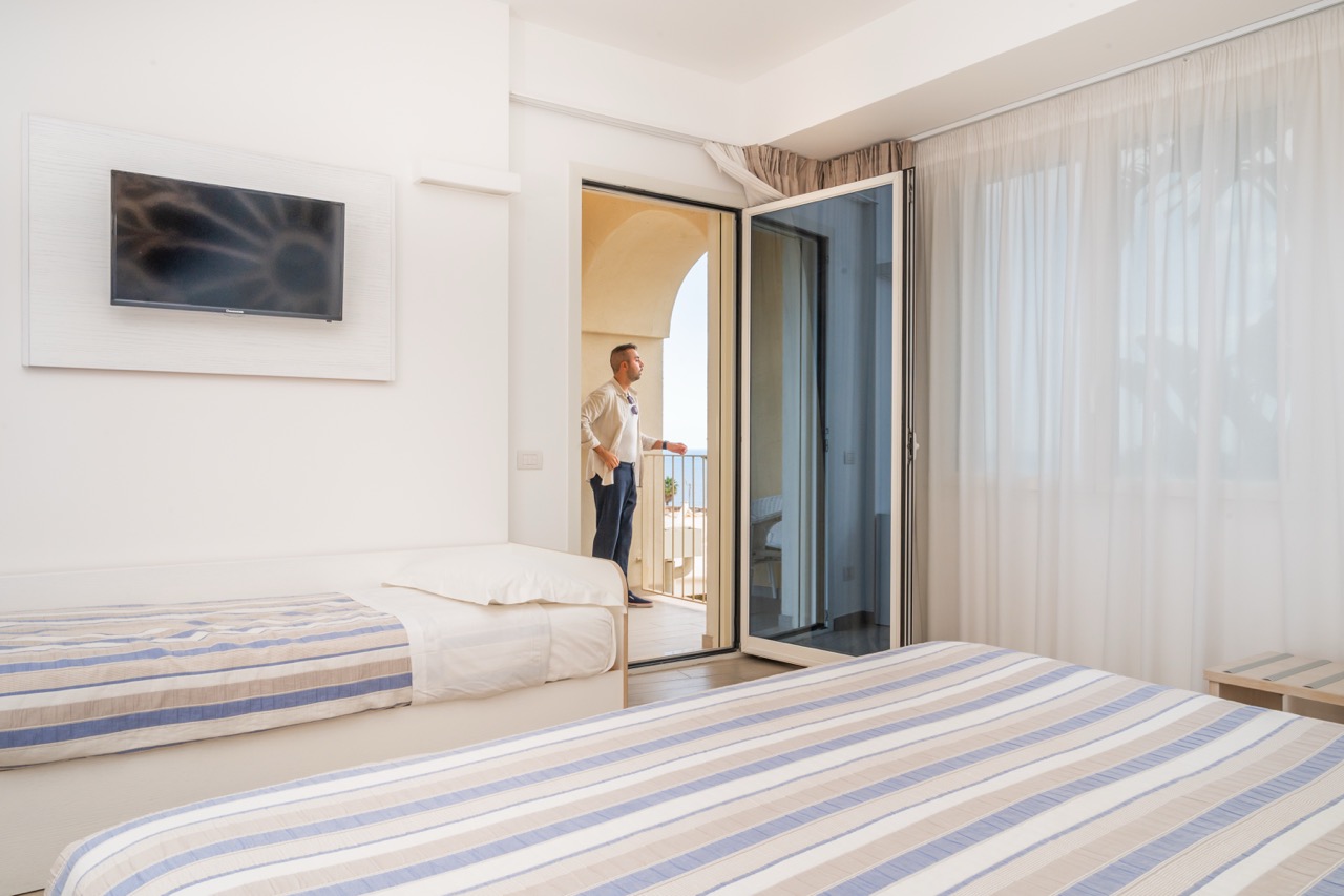 Scegliendo una camera tripla superior vista mare, vivrai un soggiorno all’insegna del comfort, della tranquillità e di un panorama mozzafiato.